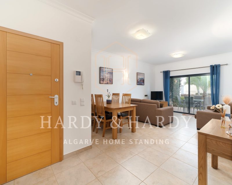 Idéalement situé dans le quartier prisé de Porto de Mós, à proximité immédiate de la plage, du golf de Boavista et du centre historique de Lagos, cet appartement de 117 m² séduit par ses beaux volumes et la qualité de ses espaces extérieurs privatifs.